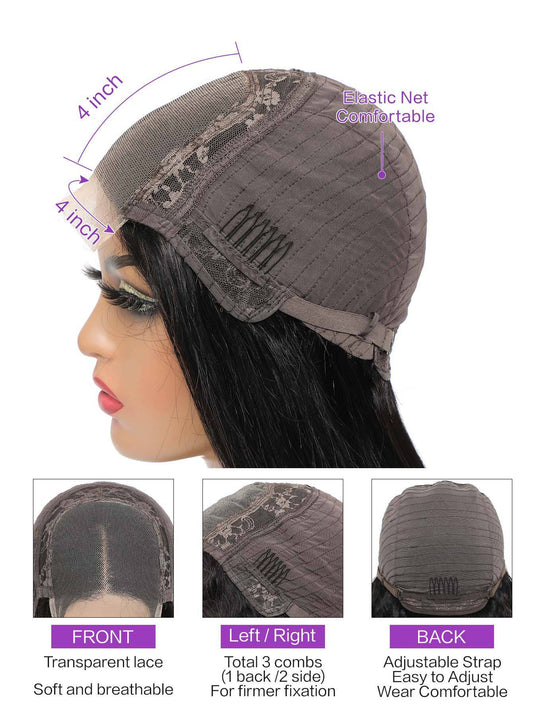 Front Transparent Lace, Styling Hair Scissors, Female Short Straight Hair Non-toxic Wig Human Hair, Wavy Wig Human Hair, No Glue.