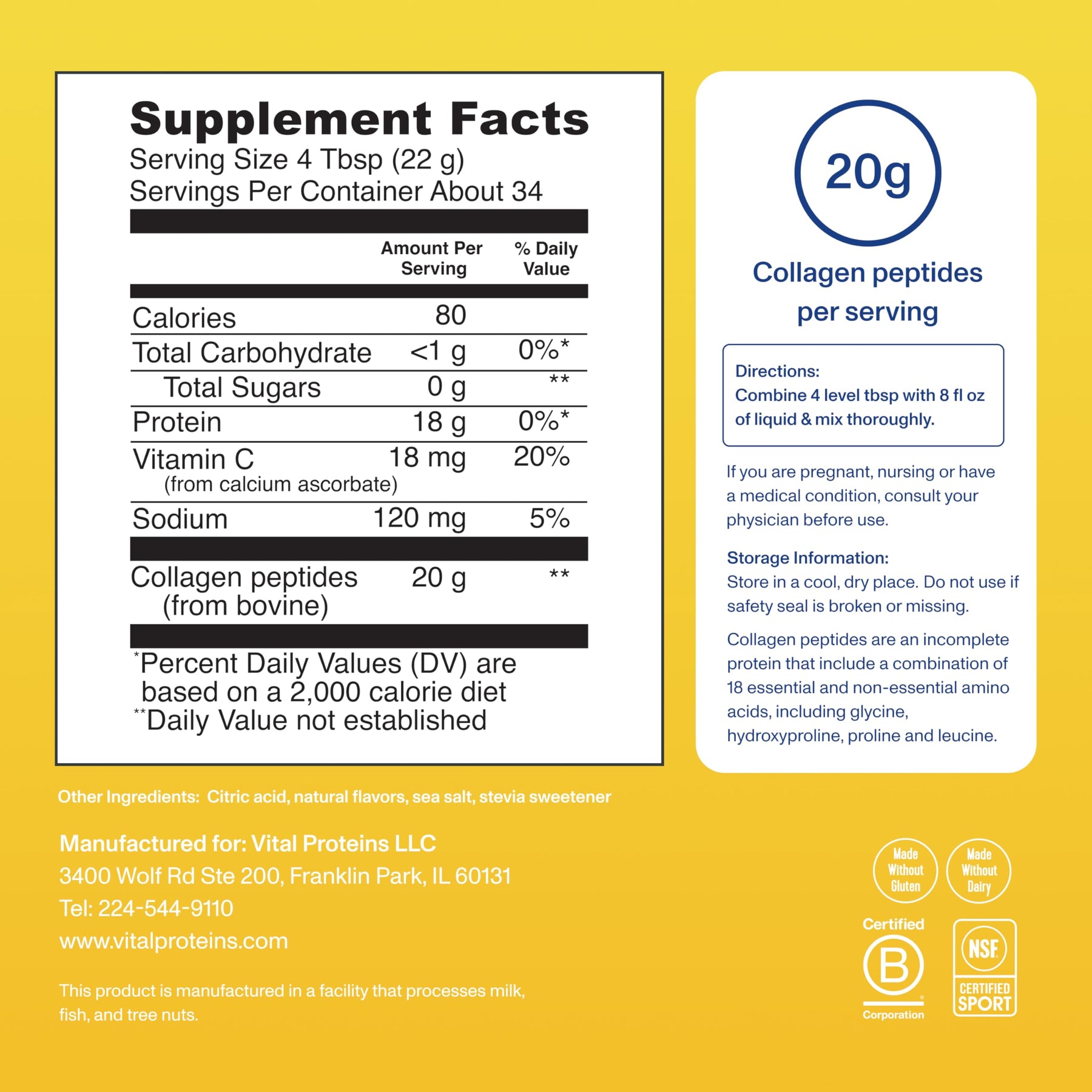 • Easy To Use ---- Vital Proteins Collagen Peptides is easily digested and dissolves in cold or hot liquids, like coffee, tea and smoothies. One to two scoops a day is all you need!