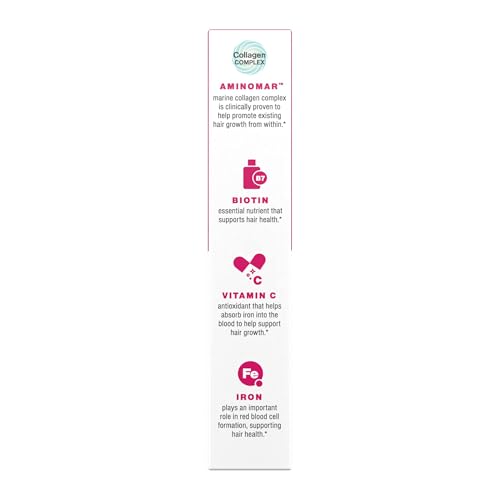 • 100% drug free, this hair supplement is made with proprietary Aminomar Collagen Complex and other key ingredients to support healthy hair growth including Biotin, Zinc, Vitamin C, Iron, and Niacin.(1)