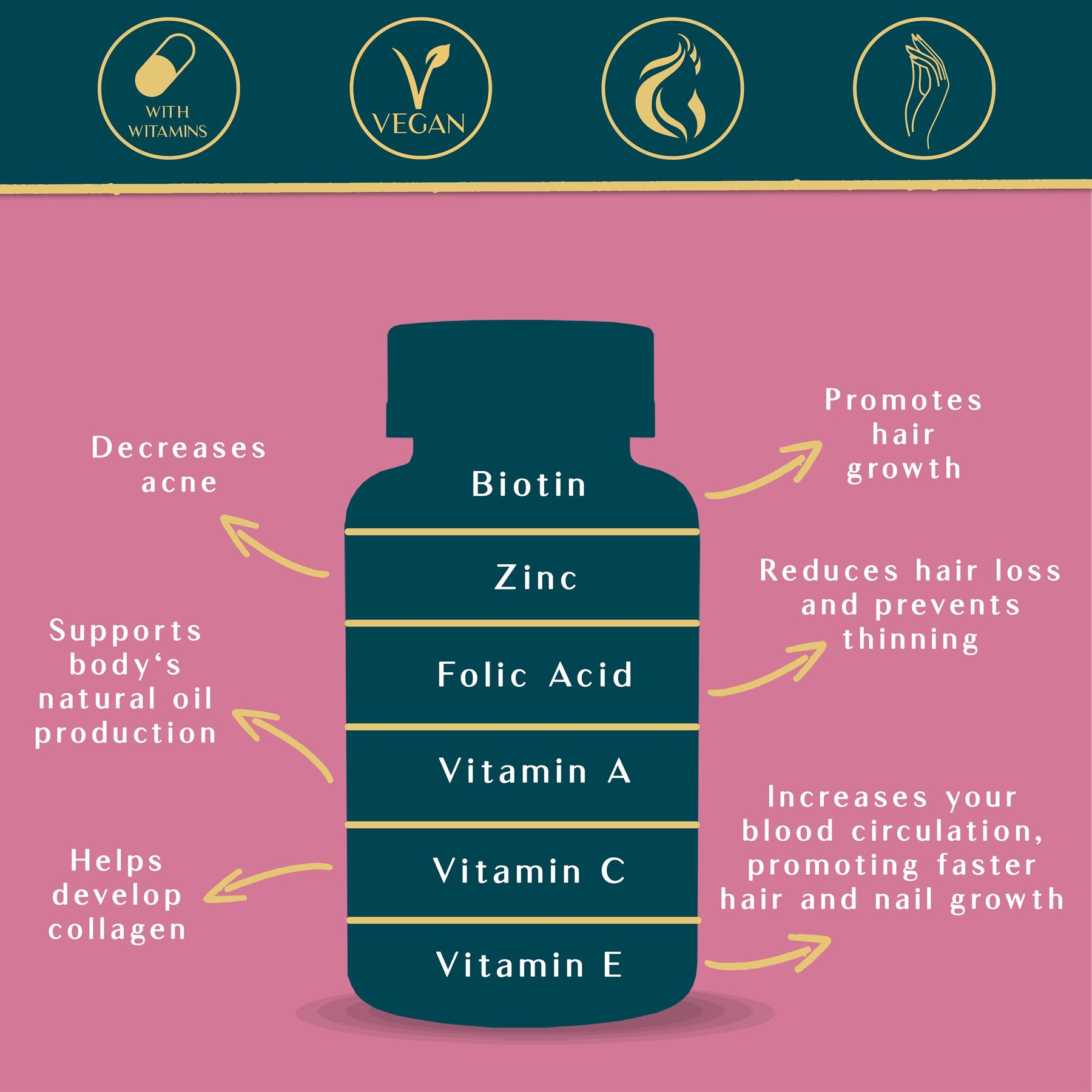 • PACKED WITH VITAMINS - Feel beautiful and support your wellness with the combined mix of Biotin and different vitamins - such as Vitamin A, C, E, B5, B6, B9, - that can help feed your body the vital nutrients your hair, skin and nails need.