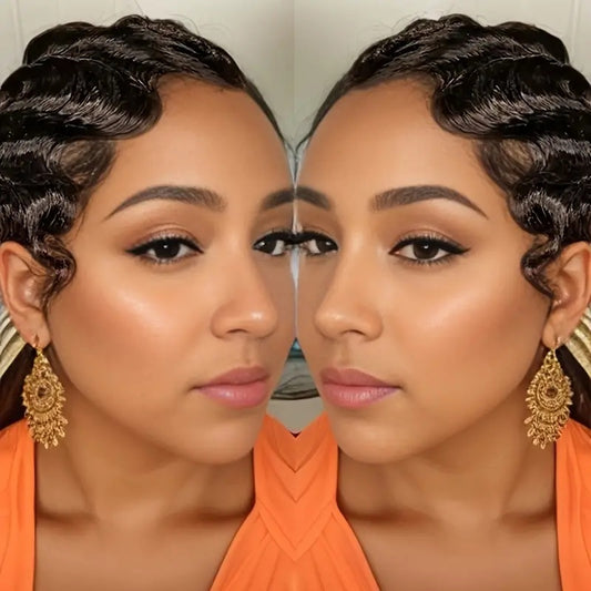Wave Wig, Short Straight Hair, Human Hair Without Glue, 13x4 HD Lace, Front Hair, Front Brown Wave Head Wig.