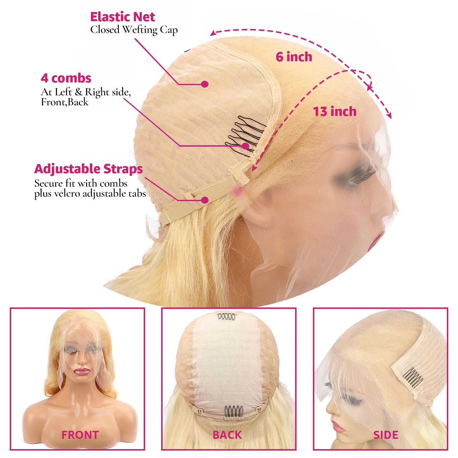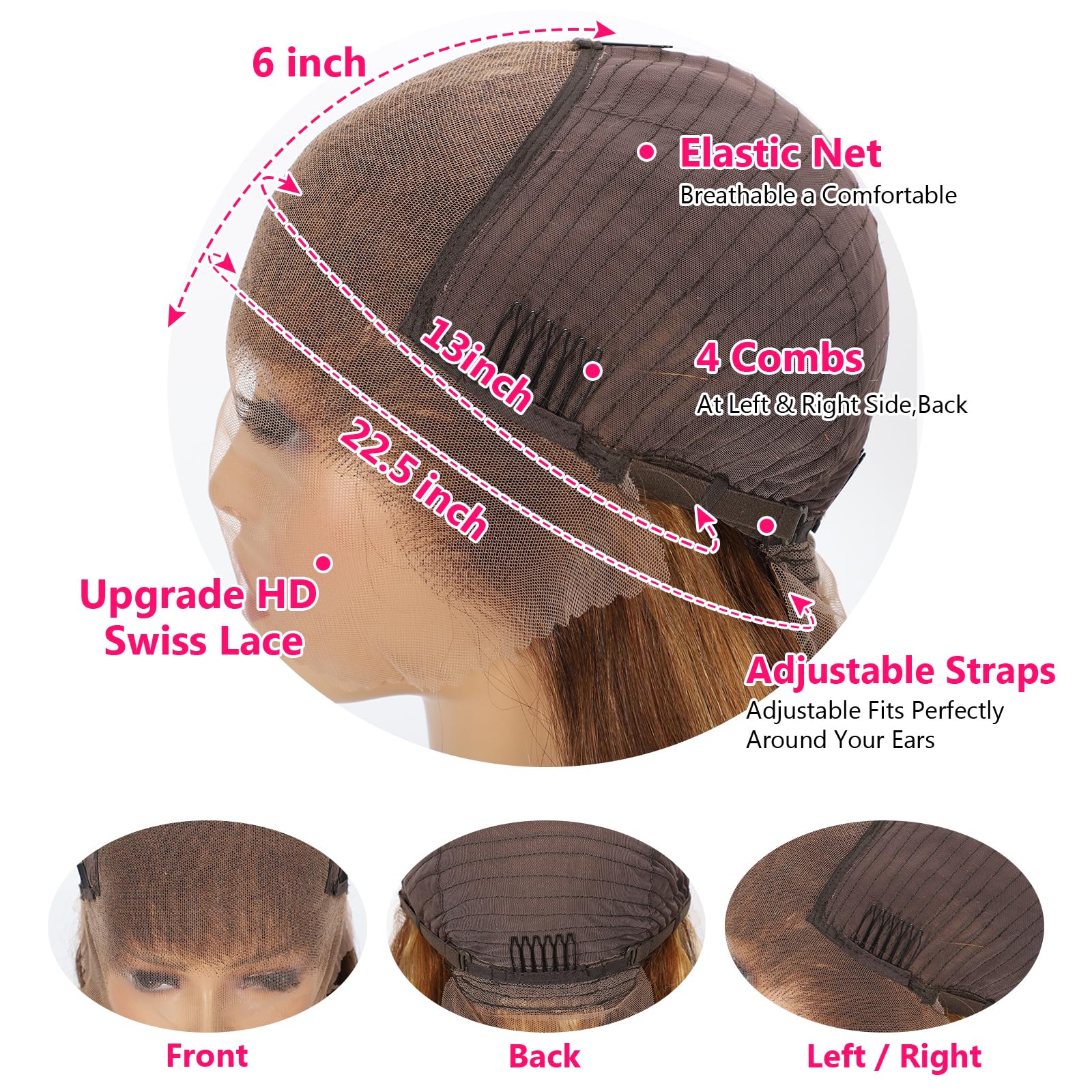 • HD Lace Front Wigs Human Hair Cap Size: 4/27 Body Wave Highlight Lace Front Wigs Human Hair, Average Cap Size (22-22.5 Inch) with Adjustable Straps and 4 Combs, More Versatility, It Can Match Most People Perfectly, Suitable for Party, Birthday, Travel, Celebration, Wedding, Graduation, and Daily Life. Make you the Most charming, Can also be Used as Gifts for Family and Friends.