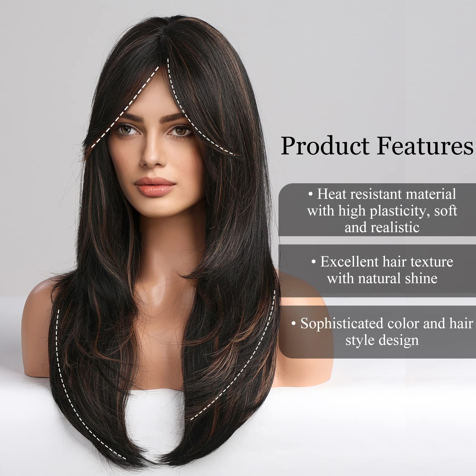 • Feeling:The soft and loose cascading natural curls let you exude natural charm, and the natural bangs can perfectly hide the hairline.