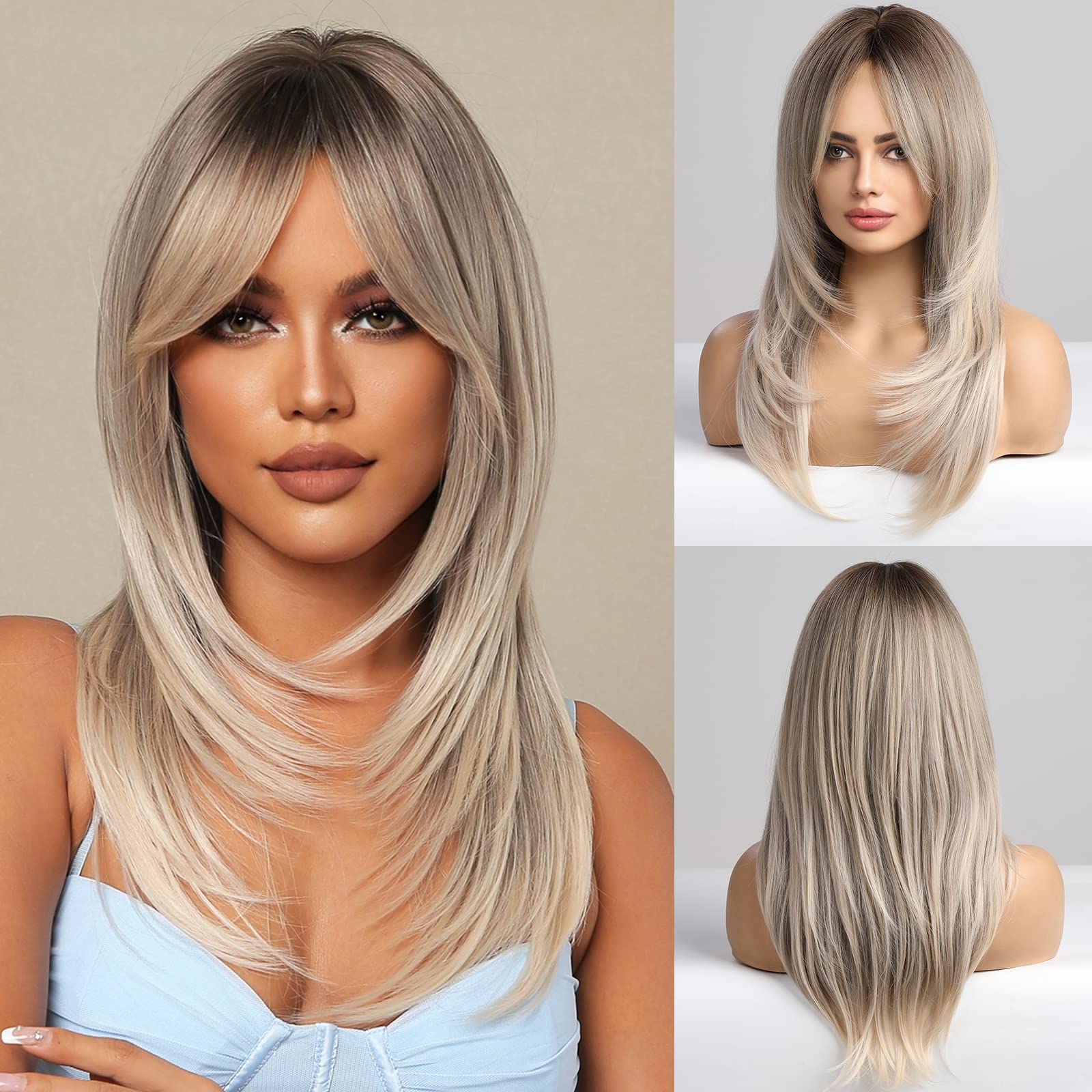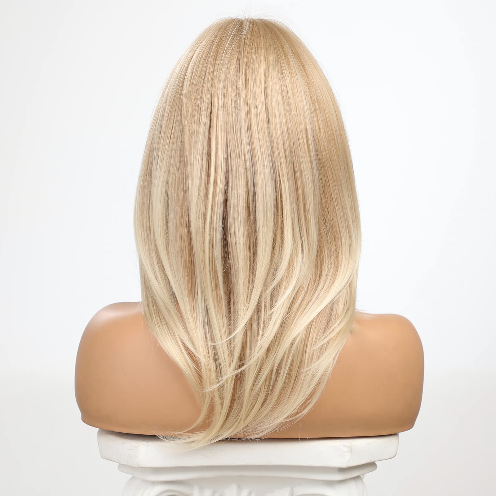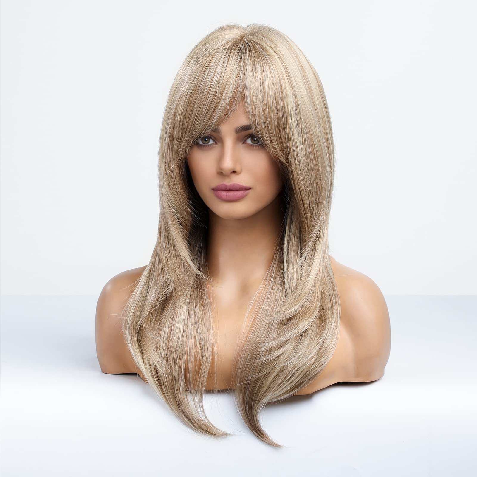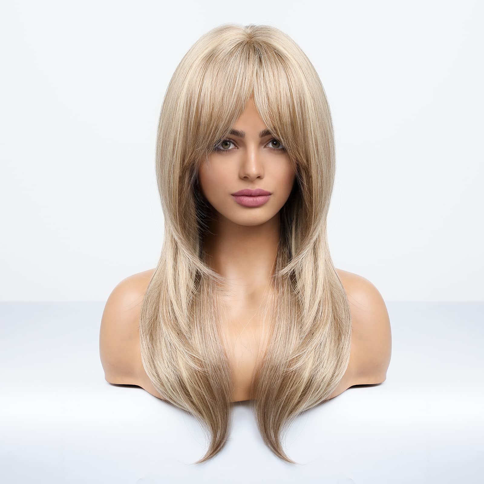 HAIRCUBE Blonde Wigs Long Curly Wigs Shoulder Length Heat Resistant Synthetic Wigs for Women with Bangs