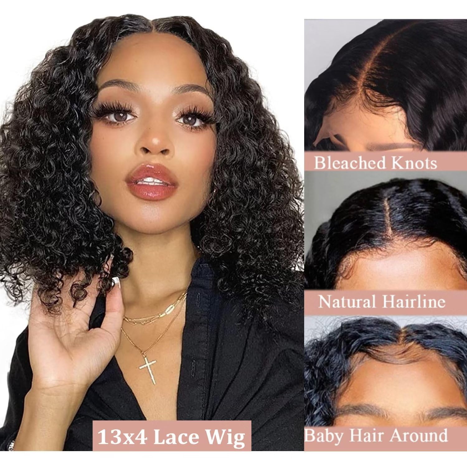 • 🌈【What Will You Get?】13x4 Glueless Bob Curly Human Hair Wig With Pretty Gifts (2 Wig Caps + 1 Pair of 3D Eye Lashes) In Pretty Package.